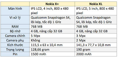 Cận cảnh bộ đôi "anh em" Nokia X+ và XL vừa bán ra thị trường (13/06/2014)(Dân trí) - Nokia X và X+ không có nhiều sự khác biệt nhưng phiên bản XL thì hoàn toàn khác biệt với thiết kế lớn hơn và cấu hình mạnh mẽ hơn. Bộ ba Nokia X đều có thiết kế giống nhau, tuy nhiên nếu như X và X+ cùng kích thước thì XL lớn hơn do sở hữu màn hình 5 inch thay vì 4 inch như “đàn em” của mình.