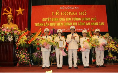 Công bố Quyết định thành lập Học viện Chính trị Công an nhân dân (28/04/2014)Ngày 25/4/2014, tại Hà Nội, Đại tướng, GS. TS Trần Đại Quang, Ủy viên Bộ Chính trị, Bộ trưởng Bộ Công an chủ trì Lễ công bố Quyết định của Thủ tướng Chính phủ thành lập Học viện Chính trị Công an nhân dân (CAND). Đại tướng, GS. TS Trần Đại Quang, Bộ trưởng Bộ Công an phát biểu tại Lễ công bố Quyết định thành lập Học viện Chính trị CAND. Dự buổi Lễ có đồng chí Nguyễn Hạnh Phúc, Ủy viên Trung ương Đảng, Chủ nhiệm Văn phòng Quốc hội; các đồng chí trong Đảng ủy Công an Trung ương, lãnh đạo Bộ Công an; đại diện lãnh đạo một số Bộ, ban, ngành ở Trung ương; lãnh đạo các Tổng cục, Vụ, Cục, Viện, Trường CAND… Tại buổi Lễ, Ban Tổ chức đã Công bố Quyết định của Thủ tướng Chính phủ thành lập Học viện Chính trị CAND; Công bố các Quyết định bổ nhiệm Ban Giám đốc Học viện. Theo đó, Đại tá, GS. TS Trương Giang Long, Phó Tổng cục trưởng Tổng cục Xây dựng lực lượng CAND được bổ nhiệm Giám đốc; 3 đồng chí được bổ nhiệm chức vụ Phó Giám đốc Học viện.