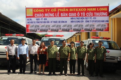 Lãnh đạo Tổng cục Hậu cần - Kỹ thuật kiểm tra chất lượng xe ô tô cứu thương (11/09/2014)Ngày 5/9, tại Hà Nội, Tổng cục Hậu cần - Kỹ thuật và Công ty Cổ phần Bitexco Nam Long đã tổ chức lễ bàn giao 26 xe cứu thương chất lượng cao cho các đơn vị y tế trong lực lượng Công an Nhân dân. Dự lễ bàn giao xe cứu thương có đồng chí Trung tướng Lê Văn Minh, Tổng cục trưởng Tổng cục Hậu cần - Kỹ thuật, đại diện lãnh đạo các đơn vị liên quan. Được biết, 26 xe cứu thương lần này nằm trong gói thầu số 25A: Xe cứu thương thuộc dự án “Trang bị nâng cấp các cơ sở y tế tại các đơn vị có nguy cơ lây nhiễm cao trong Công an Nhân dân”.