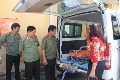 Ảnh 1: Các đại biểu dự lễ bàn giao xe cứu thương Phát biểu tại lễ bàn giao, đồng chí Trung tướng Lê Văn Minh cho biết: Nhằm đẩy mạnh công tác xã hội hóa y tế trong Công an nhân dân, việc đầu tư, bổ sung 26 xe cứu thương chất lượng cao lần này góp phần làm giảm đáng kể tình trạng khó khăn khi chuyển viện tại các bệnh viện, bệnh xá. Trong thời gian tới, Tổng cục Hậu cần - Kỹ thuật sẽ tiếp tục quan tâm, chia sẻ những khó khăn về vật chất, cung cấp các trang thiết bị y tế chữa bệnh tại các bệnh viện, bệnh xá trong lực lượng Công an Nhân dân.